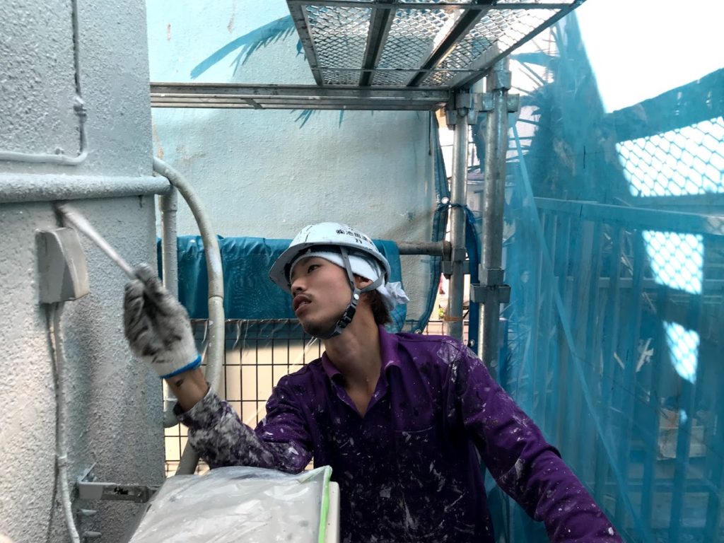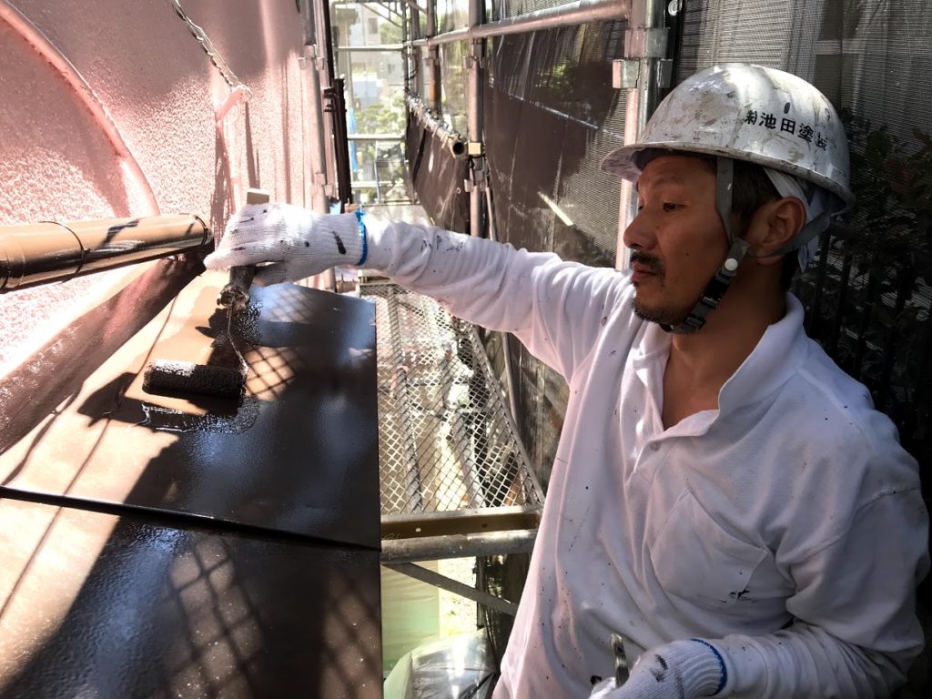 本日は付帯部の上塗り、細部手直し作業を行いました。