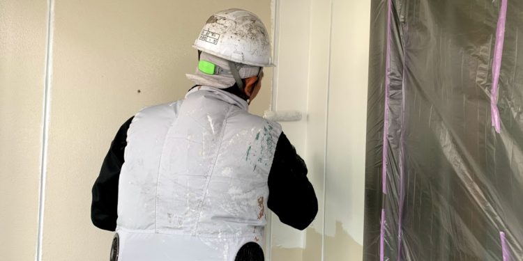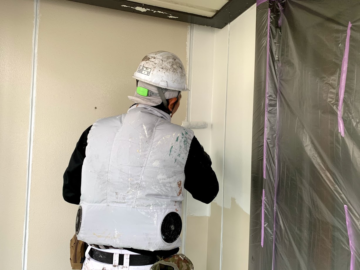 本日は屋根・外壁の下地調整後、下塗り作業を行いました。下塗りからタップリと塗装していきます。