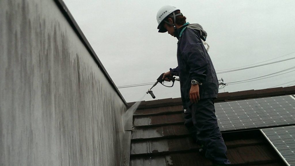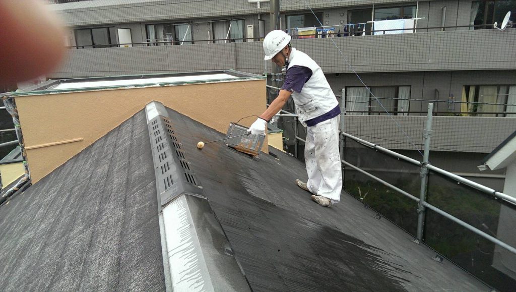 本日は外壁の中塗り作業と屋根の下塗り作業を行いました。