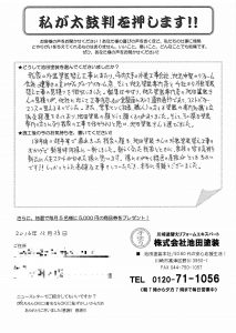 ストパフォーマンスの見えるものでした。また、営業マン(社長、職人)の方々も塗装の専門知識と立派な経歴をもっており、池田塗装の顔として輝くものがありました。そして、その様な塗装専門店の方々になら我家の工事を任せられると思い、池田塗装さんを選びました。